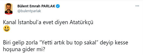 "Kanal İstanbul’a evet diyen Atatürkçü Biri gelip zorla ‘Yetti artık bu top sakal’ deyip kesse hoşuna gider mi?"
