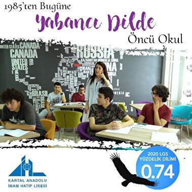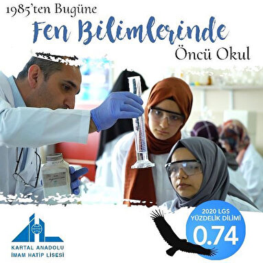 Türkiye'nin en çok tercih edilen okulları arasında yer alan Kartal Anadolu İmam Hatip Lisesi, yeni öğrencilerini bekliyor. 2020’de LGS sınavında 0,7’lik dilimden öğrenci alan Kartal Anadolu İmam Hatip Lisesi, bu yıl da sınavda başarılı olan 150 öğrenciyi bünyesine kabul edecek.