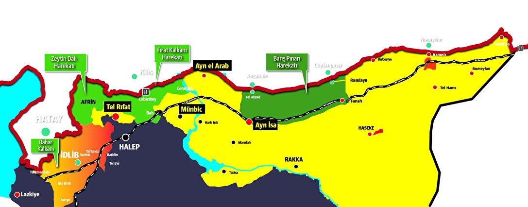 Türk Silahlı Kuvvetleri (TSK) ve Suriye Milli Ordusu’nun (SMO) Suriye’nin kuzeyinde gerçekleştireceği operasyon için geri sayım başladı. Özellikle Tel Rıfat, Münbiç, Aynel Arap (Kobani), Tel Tamir ve Ayn İsa’da terör örgütünün birinci savunma hattı, aralıksız top atışlarıyla yerle bir edildi. Terör örgütü, Münbiç ve Kobani’de yeraltı tünellerine çekilmeye başladı.