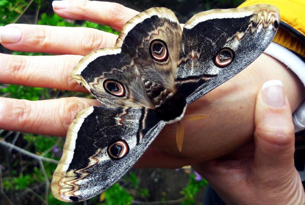 Bodrum'un Yakaköy Mahallesi'ndeki Dibeklihan Kültür ve Sanat köyünün yöneticiliğini yapan 35 yaşındaki Uluç Tezer ve eşi 33 yaşındaki Özge Tezer çiftinin kızları 6 yaşındaki Ada Tezer, sanat merkezinin bahçesinde 17 santimetre kanat genişliğinde tavus kelebeği buldu. Tezer Ailesi, yakaladıkları kelebeği merakla inceledi.