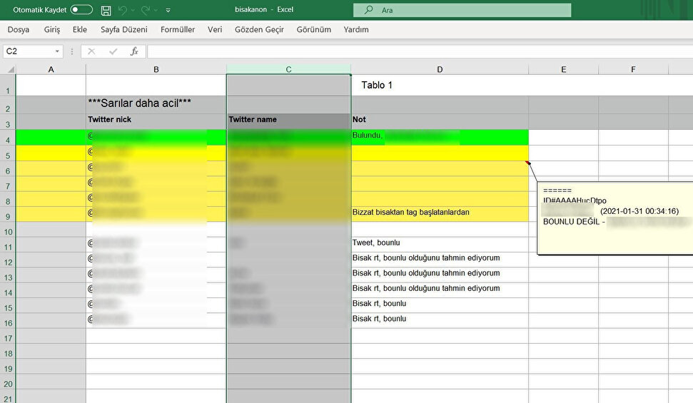 Ertesi gün -31 Ocak Pazar akşamı- BİSAK, üyelerinin ve arkadaşlarının fişlenip tehdit edilmesine karşı çıktığını belirten bir tweet daha attı.
