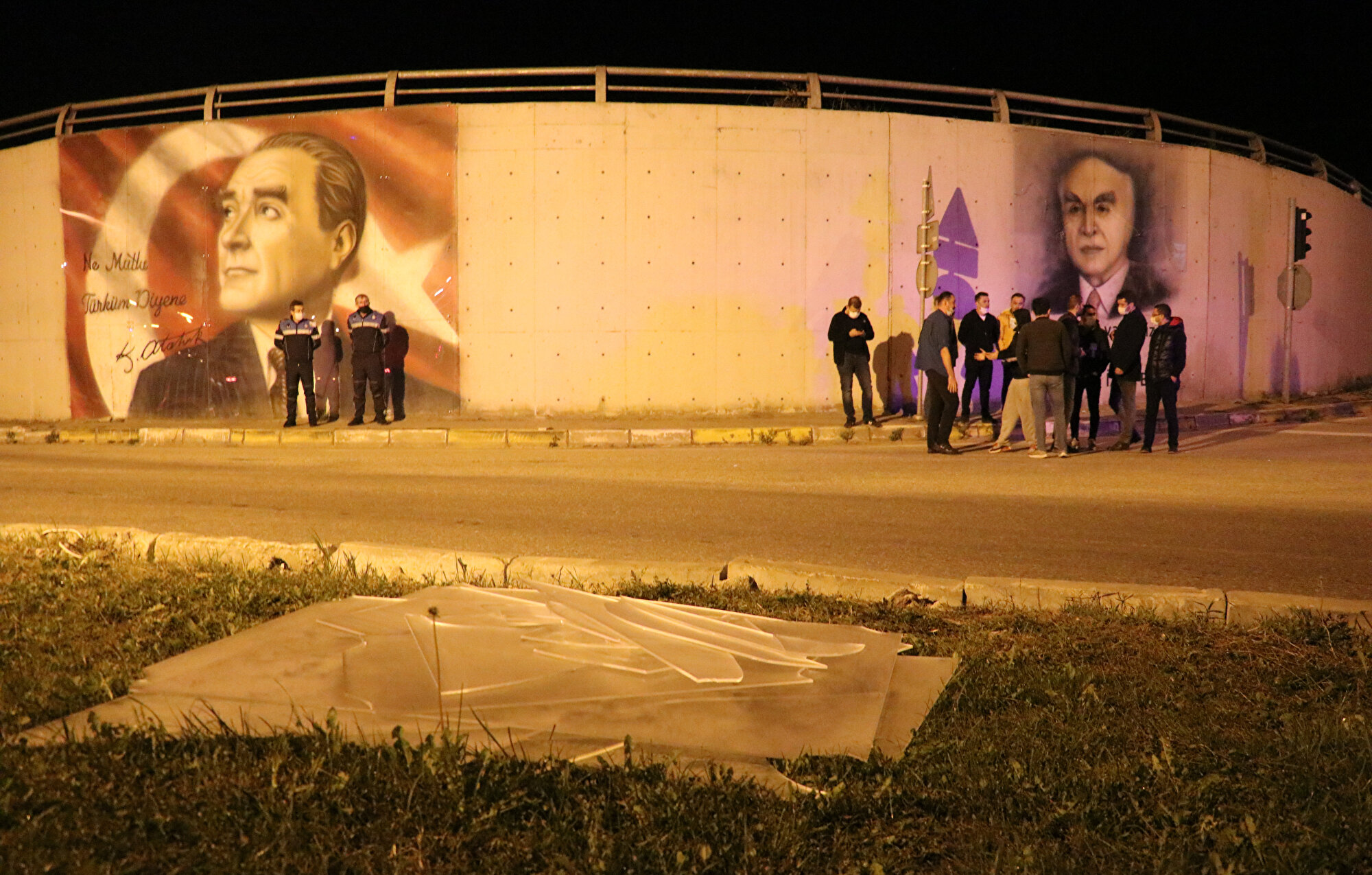 - "Geçerken sürücülerin dikkatini çekmek suretiyle trafik kazasına sebep olabileceği değerlendirilerek Karayolları yetkilileri tarafından bu izinsiz görüntülerin duvarlardan kaldırılması yönünde talimat verildiğini öğrendik. Bu çerçevede Karayolları ekipleri, çalışma başlattı ama şimdi bu saat itibarıyla bu çalışmayı durduracağız. Konunun gerekli ve ilgili kurumlar tarafından gerekli işlemler yapılmak suretiyle çözülmesi yoluna gideceğiz. Dolayısıyla şu anda büyütülecek herhangi bir sorun yok."
