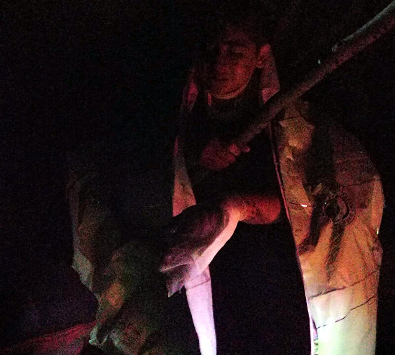 Durum, itfaiye ve 112 Acil ekiplerine bildirildi. Ölen babasının yanında saatlerce kurtarılmayı bekleyen Enes Yiğit, haber verilmesi üzerine kaza yerine gelen, itfaiye ekiplerince kurtarıldı.