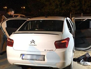 Araçta bulunan 3 kişi, gözaltına alındı.