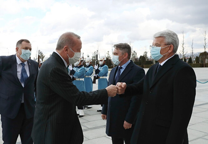 Cumhurbaşkanı Recep Tayyip Erdoğan'ın daveti üzerine Türkiye'ye gelen Bosna Hersek heyeti için Külliye'de karşılama töreni düzenlendi. Görüşmelerin ardından iki ülke arasında anlaşmalar imzalanacak.