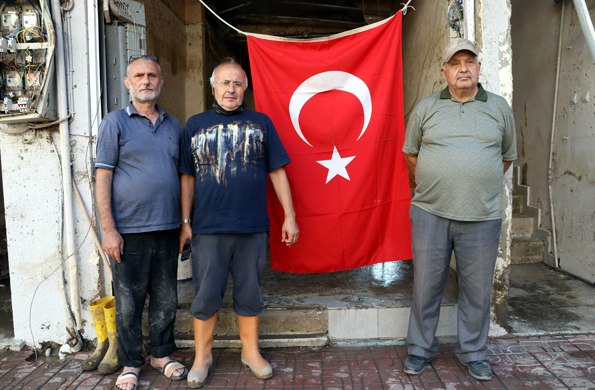 "Bölgede çok sayıda kepçe çalışıyor. Onlar çalışırken bazen dükkanlardan bayraklar çıkıyor. Çıkan bayrakları alıp, yıkıyoruz. Sonra da dükkanlara asıyoruz. İnşallah Bozkurt eskisinden daha güzel inşa edilir. Biz devlet babaya güveniyoruz ve devlet babadan onu bekliyoruz. Umudumuz var."