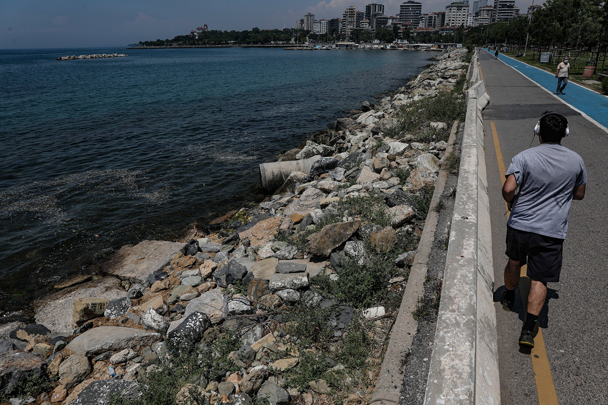 Vatandaşların yürüyüş yaptığı ve kayalıklarda oturarak denizi seyrettiği alanda deniz kirliliğine pis koku da eşlik ediyor. Deniz üzerinde kahverengi bir tabakanın içinde bol miktarda evsel atık ve deniz anası olduğu görüldü.