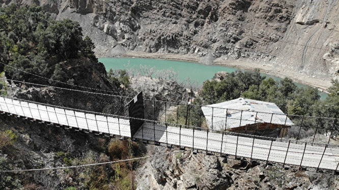Artvin’in Yusufeli ilçesi Zeytincik köyü Gökçele Mahallesi sakinleri, evlerine ulaşabilmeleri için DSİ tarafından yapılan 70 metrelik asma köprünün ortasına, dört yıl önce güvenlik nedeniyle demir kapı taktırdı. Köyün bir bölümü ve yolları Deriner Barajı su tutmasının ardından sular altında kalırken, mahalleye ulaşımı sağlamak için DSİ 26. Bölge Müdürlüğü, yüksekliği 100 metre, genişliği 1,6 metre olan 70 metrelik asma köprü inşa etti.