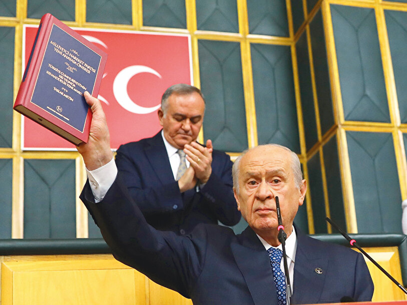 MHP lideri Bahçeli Cumhurbaşkanlığı Hükümet Sistemi'nin, Türkiye’nin arayıp bulduğu şifa olduğunu bu sistemden geriye dönüş olmayacağını söyledi. Bahçeli şöyle konuştu: Türkiye’nin film şeridi gibi geriye sarması diye bir şey de söz konusu olamayacaktır. (6’lı masa) Bunların yapacağı anayasa yıkım anayasası.