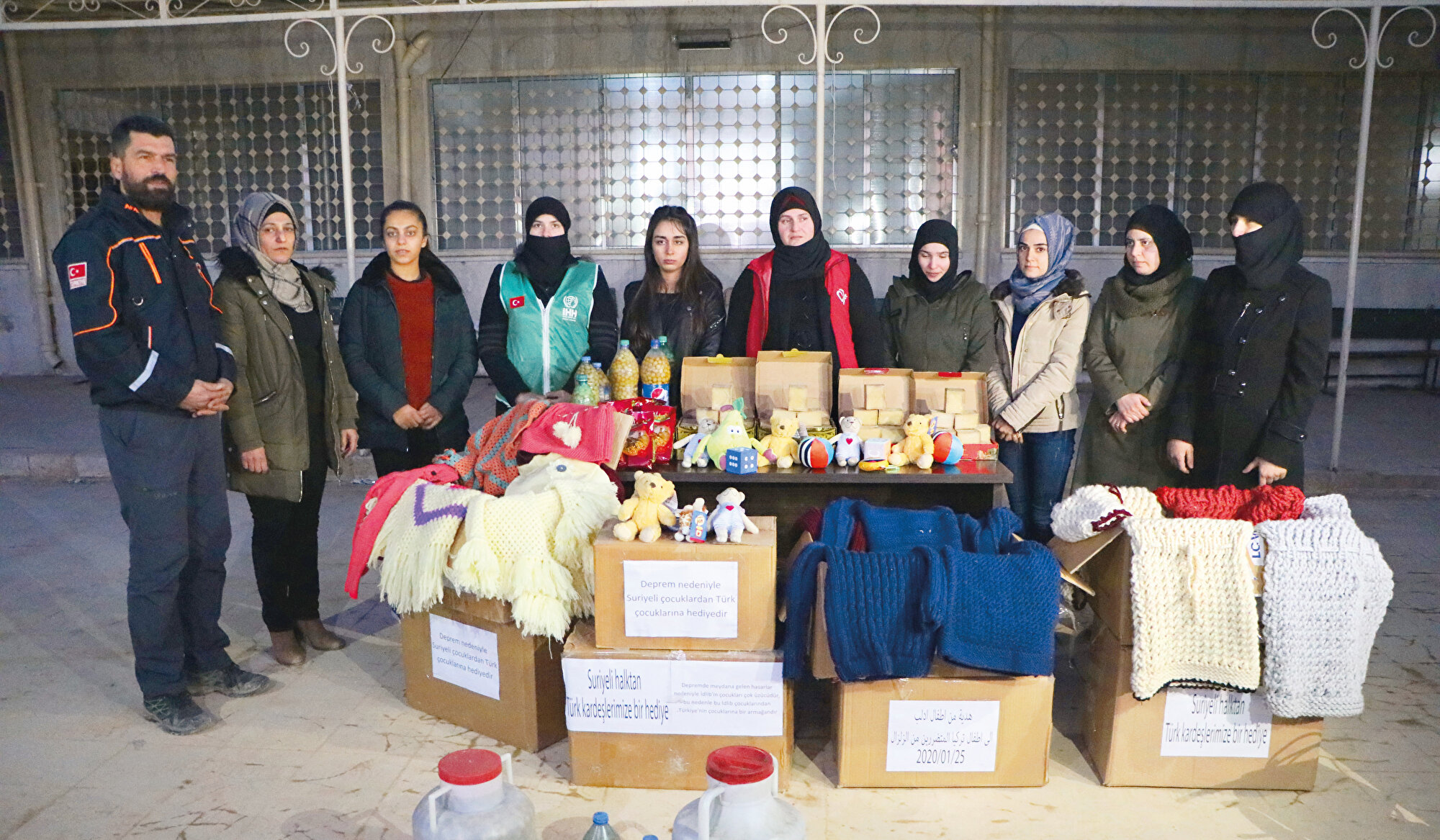 - Savaş bölgesinde yaşamalarına rağmen Elazığ’da yaşanan acılara ortak olan Afrinli kadınlar da deprem bölgesine yardım gönderdi. Yapılan yardımla ilgili bilgi veren Aile, Çalışma ve Sosyal Hizmetler İl Müdür Yardımcısı Mehmet Ali Güven, Zeytin Dalı Harekatı bölgesindeki Suriyelilerin, deprem nedeniyle yardım kampanyası başlattığını söyledi. Kadınların kısa sürede kısıtlı imkanlarla topladığı yardımları teslim aldıklarını ifade eden Güven, kendilerinin de bu yardımları AFAD’a ilettiklerini kaydetti. Güven, içerisinde zeytin, sabun ve kadınların ördüğü kazakların yer aldığı yardım kolilerinin AFAD aracılığıyla deprem bölgesine gönderildiğini belirtti. Öte yandan belediye ve parti teşkilatları tarafından toparlanan yardım malzemeleri de TIR’lara yüklenerek deprem bölgelerine gönderilmeye devam ediyor.