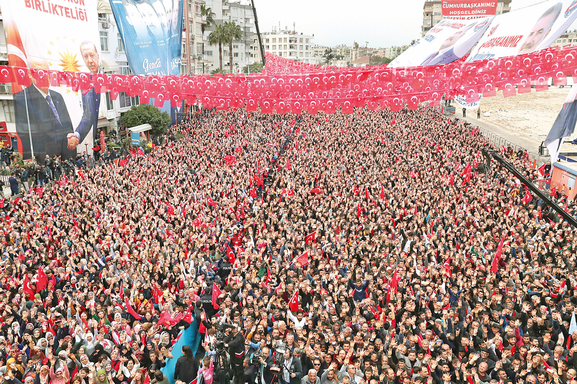 31 Mart yerel seçim kampanyasına sırasıyla Adana, Mersin ve İskenderun ve Belen’de devam eden Erdoğan, “Taksim’de CHP ve HDP’nin öncülüğünde güya kadınlar günü için bir araya gelen bir grup, ezana ıslıklarla, sloganlarla terbiyesizlik ettiler. O güruhun, ezanı Muhammediye’ye ıslıklarla, sloganlarla yaptıkları saygısızlığı herhalde gördünüz değil mi? Bu CHP zihniyetinin tarihi, ezan ve cami konusunda zaten bu tür hoyratlıklarla doludur ama Taksim’deki hadise gerçekten ibretliktir” dedi. Bu olayın görüntülerini alana kurulan dev ekrandan izleten Erdoğan, “Aynı toplantıda sergilenen ve kadınlara en büyük hakaret olarak gördüğüm diğer rezillikleri bir kenara bırakıyorum. Sadece ezana yapılan saygısızlık bu seçimlerin aslında ülkemizin ve milletimizin geleceği açısından nasıl bir karar seçimi olacağını gösteriyor” ifadelerini kullandı.
