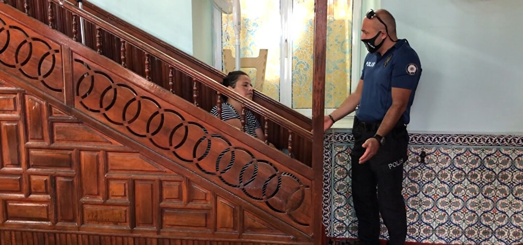 Sağlık görevlilerinin girişimi de yanıtsız kalınca, Nazlı K., polis ekiplerince zorla sedyeye yatırılarak, camiden çıkarıldı.