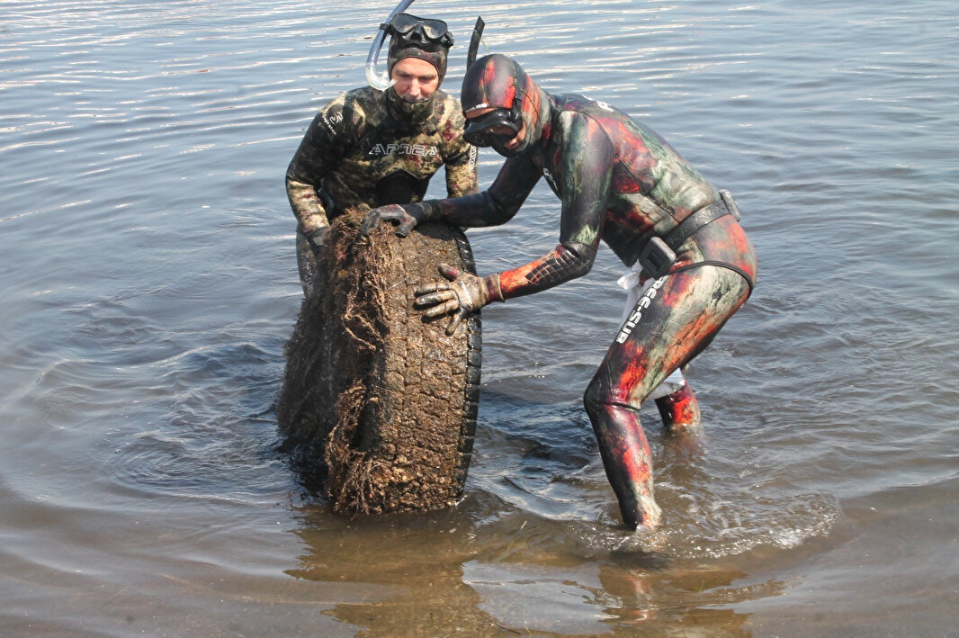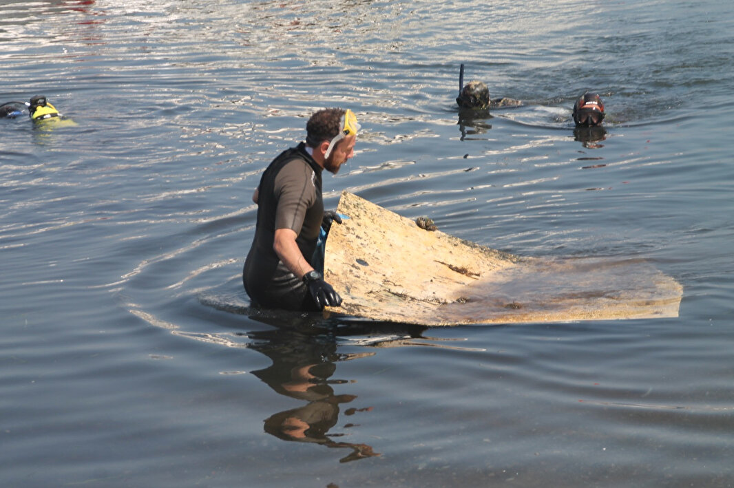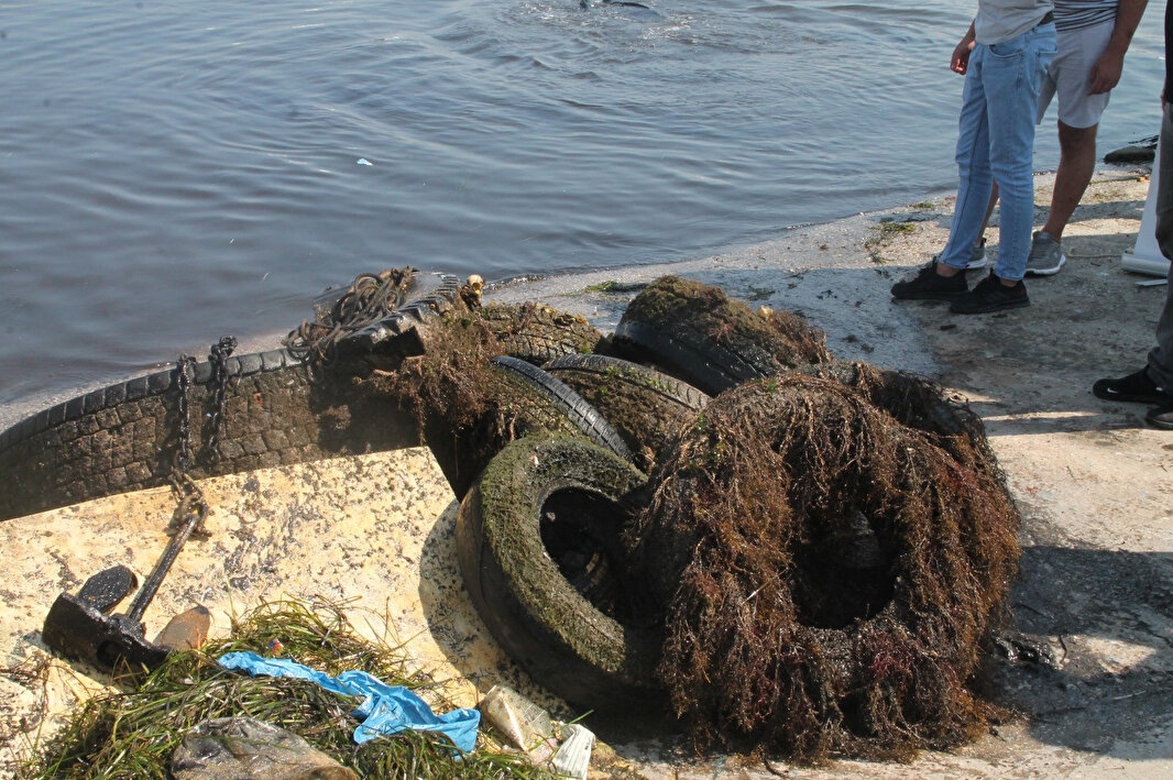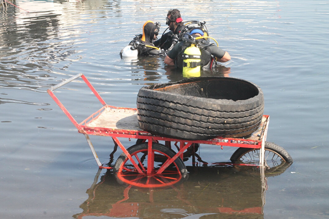 Çalışmanın ilk etabında, 23 farklı ölçülerde araç lastiği, kağıt para, farklı boyutlarda plastikler ve katı atıklar ekipler tarafından denizden çıkarıldı.