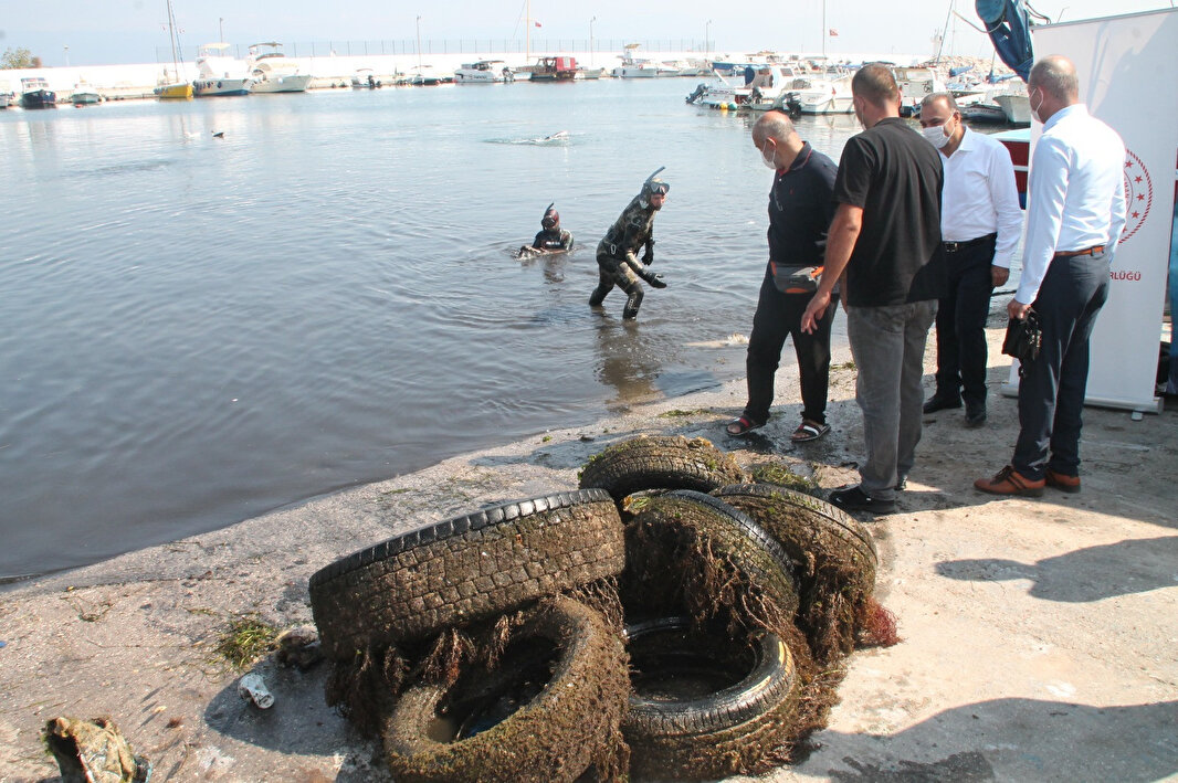Bursa'nın Gemlik ilçesinde, balıkçı barınaklarında temizlik yapılırken, denizden 23 araç lastiği çıktı. Lastikleri gören vatandaşlar şaşkına döndü.