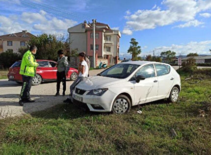 Mustafa Emre Ç.'nin kullandığı otomobil, kavşakta kontrolden çıkarak tarlaya devrildi. Çevredekilerin ihbarı üzerine kaza yerine polis ekipleri sevk edildi.