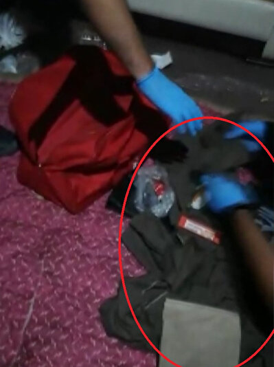 Operasyonda evin içindeki gizli bölmelerde DEAŞ'a ait paçavralar, 3 patlayıcı düzeneği, "canlı bomba yeleği" ve bomba yapımında kullanılan materyaller ele geçirildi.