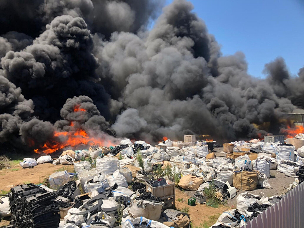 Geri dönüşüm tesisinin kullanılamaz hale gelmesine yol açan yangın, çevredeki bazı zeytin ağaçlarına da zarar verdi.