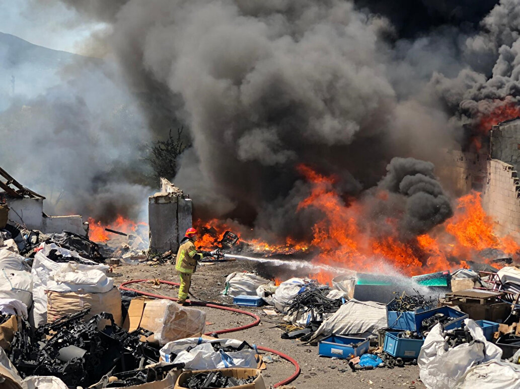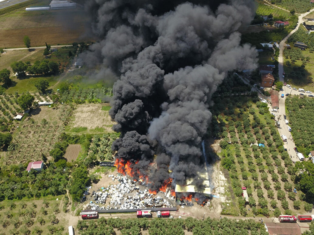 Çeltikçi Mahallesi'nde, Kenan Karakuş'a ait tesisin açık alanında kaynak yapıldığı sırada çıkan kıvılcımlar plastik malzemeleri tutuşturdu. Kısa sürede tesisi saran alevler, gökyüzünü kapladı.