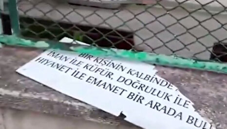 İstanbul Fatih'te kimliği henüz belirlenemeyen bir şüpheli, Seyyid Ömer Mahallesi'ndeki tarihi Şeyh Hüsamettin Camisi'ndeki duvara asılı hadis-i şerif yazılı kağıtların bazılarını yırttı.