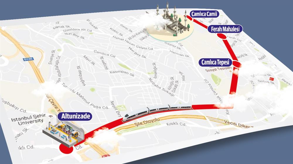 Daha önce duyurulan Zincirlikuyu-Çamlıca teleferik projesi geçtiğimiz Temmuz ayında İBB Meclisi tarafından iptal edilmişti. Teleferiğin yerini metro projesi aldı. Yapımı devam eden Çamlıca Camii'nin açılmasıyla hareketliliğin artacağı bölgeye rahat ulaşım için metro inşa edilecek. Altunizade Köprülü Kavşağı'ndan başlayacak hat, Küçükçamlıca Mahallesi'nden Ferah Mahallesi'ne oradan da Çamlıca Camii'ye kadar uzanacak. Hattın uzunluğu 3 buçuk kilometre olacak. Hat üzerinde 4 istasyon bulunacak. Hat Altunizade'den metrobüs ve Üsküdar-Ümraniye metro hattıyla entegre olacak. 2017 yılında başlayacak metro projesinin 2019'a kadar tamamlanması hedefleniyor.