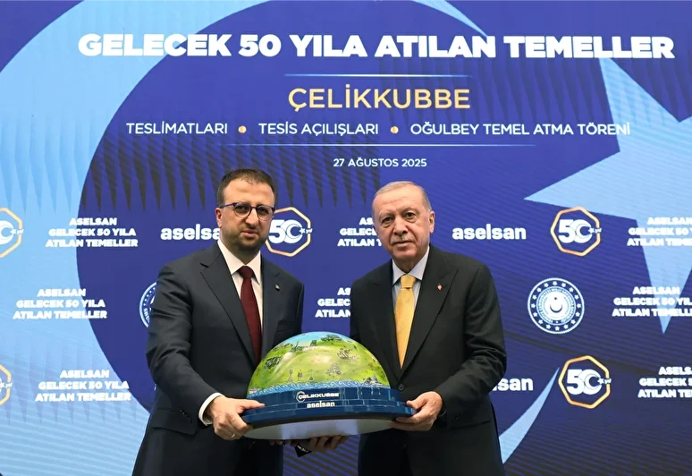 ASELSAN'ın Çelik Kubbe'de sistem geliştirmenin yanı sıra kritik bir rolü daha bulunduğuna işaret eden Erdoğan, sahadaki bütün sistemlerin birbiriyle anlık haberleşmesini ve entegre çalışmasını sağlayacak yapay zeka destekli komuta kontrol yazılımını da ASELSAN'ın geliştirdiğini kaydetti.