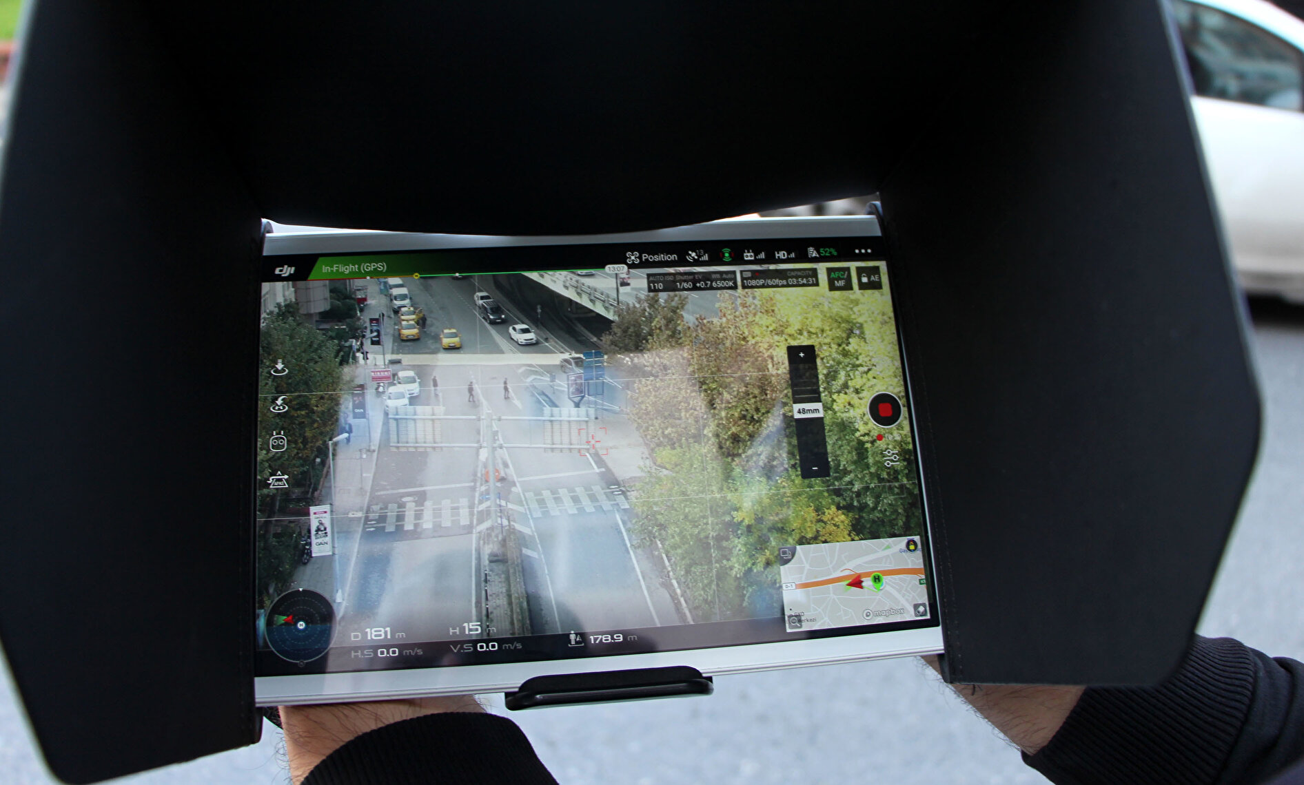 Trafik polisleri kural ihlaline ilişkin görüntülerini tablette bulmaya çalışırken, sürücü olay yerinden ayrıldı.