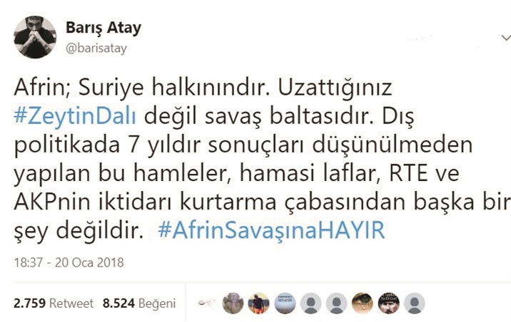 Hatay’dan milletvekili olan Atay da, birçok defa TSK'yı hedef aldı. Zeytin Dalı Harekatı’na “Zeytin dalı değil, savaş baltasıdır” diyerek dil uzatan Atay, sürekli toplumun sinir uçlarıyla oynayan bir aktör olarak pozisyon aldı. Her seferinde haddini aşan ifadelerde bulunan provokatör Atay, Cumhur İttifakı’ndaki partilere oy verecek vatandaşları “Hesabını vereceksiniz” diyerek tehdit etti.