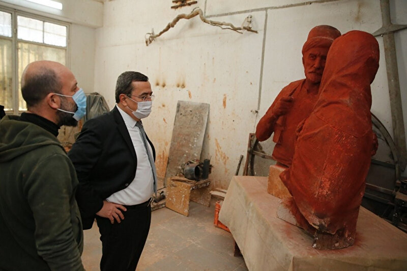 İzmir’de CHP’li Konak Belediyesi, Türkiye ile Yunanistan arasında yaşanan nüfus mübadelesini temsil eden bir heykel yaptırıyor. Heykelin yapıldığı atölyeyi beraberindeki heyetle ziyaret eden Konak Belediye Başkanı Abdül Batur, incelemelerde bulundu.