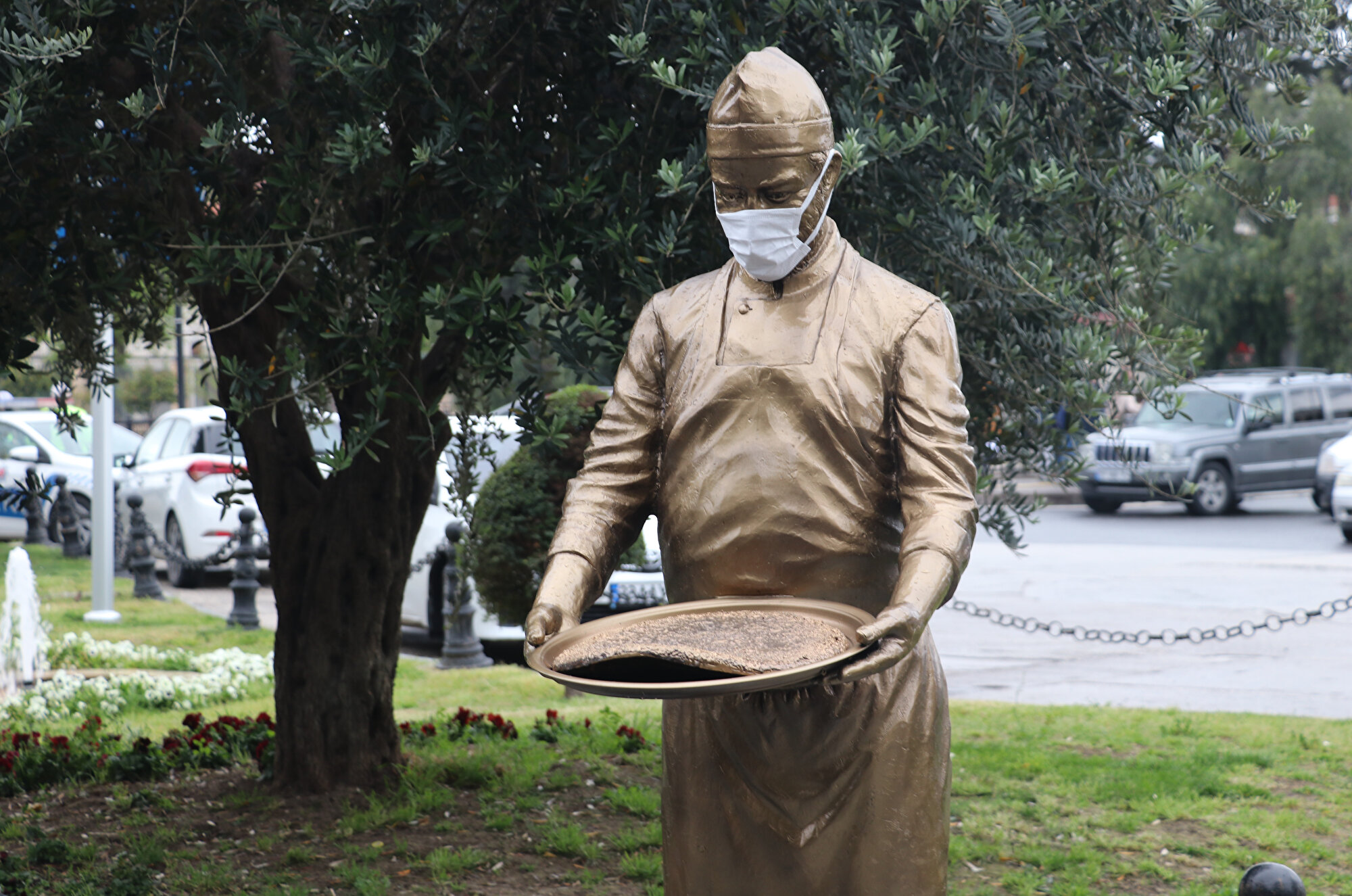 Büyükşehir Belediyesince 3 sene önce Künefeciler Meydanı olarak bilinen Ulus Meydanı'na yerleştirildikten sonra tepsisi çalınan, ardından da elleri kırılan heykel tamir edildi.