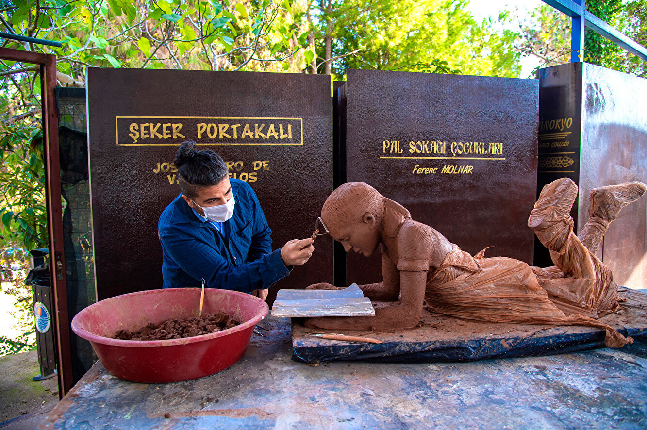 Park ve Bahçeler Dairesi’nde görevli Heykeltıraş Okan Apak ve Serdal Özdemir, Adnan Menderes Bulvarı Mersin Marina karşısındaki Bölge Park içerisinde oluşturulan okuma alanına özel olarak, okuyan çocuk heykelleri hazırladı.