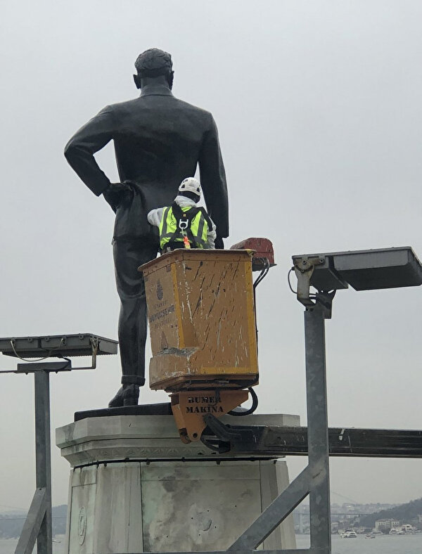 Belli aralıklarla düzenli olarak temizlenen anıtın arka kısmı ise bugün vinç yardımıyla bir kez daha kontrol edildi. Gerekli işlemleri yapan ekipler, başka bir heykeli daha temizlemek için bölgeden ayrıldı.