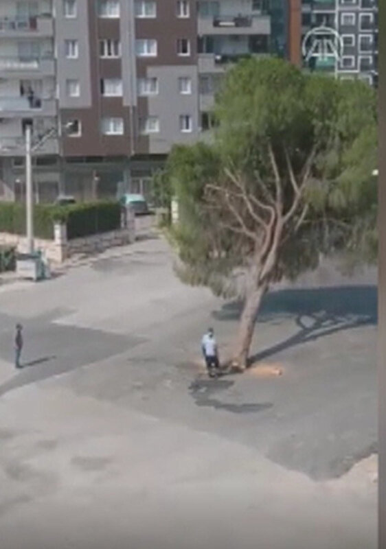 İzmir Büyükşehir Belediyesi çalışanları yarım asırlık çam ağacını kesti - Video
