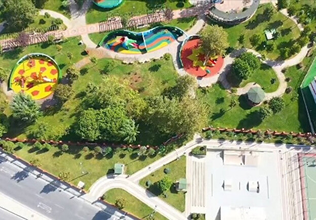 Yenileme çalışmasında parkta kullanılan görsel ve renkler terör örgütü PKK/YPG paçavrasına benzerliği ile dikkat çekti.