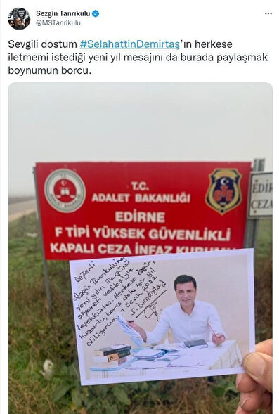CHP İstanbul Milletvekili Sezgin Tanrıkulu, yeni yılın ilk gününde terör soruşturmaları kapsamında tutuklu bulunan HDP'nin eski Eş Başkanı Selahattin Demirtaş'ı, Osman Kavala'yı ve Selçuk Kozağaçlı'yı cezaevlerinde ziyaret etti. Ziyaretlerine ilişkin detayları sosyal medya hesabından paylaşan ve Demirtaş'ın mesajını selamını takipçilerine ileten Tanrıkulu, "Borcumu yerine getiriyorum" dedi.