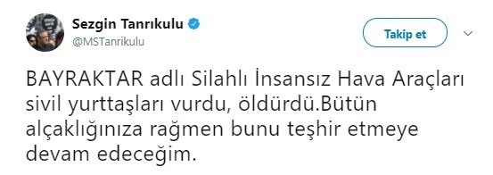 SİHA ile öldürülen teröristler için 'sivil yurttaş' ifadesini kullanan Tanrıkulu, "Bütün alçaklığınıza rağmen bunu teşhir etmeye devam edeceğim" ifadelerini kullandı.