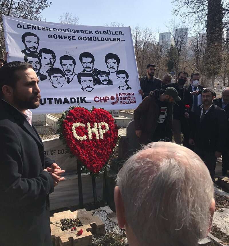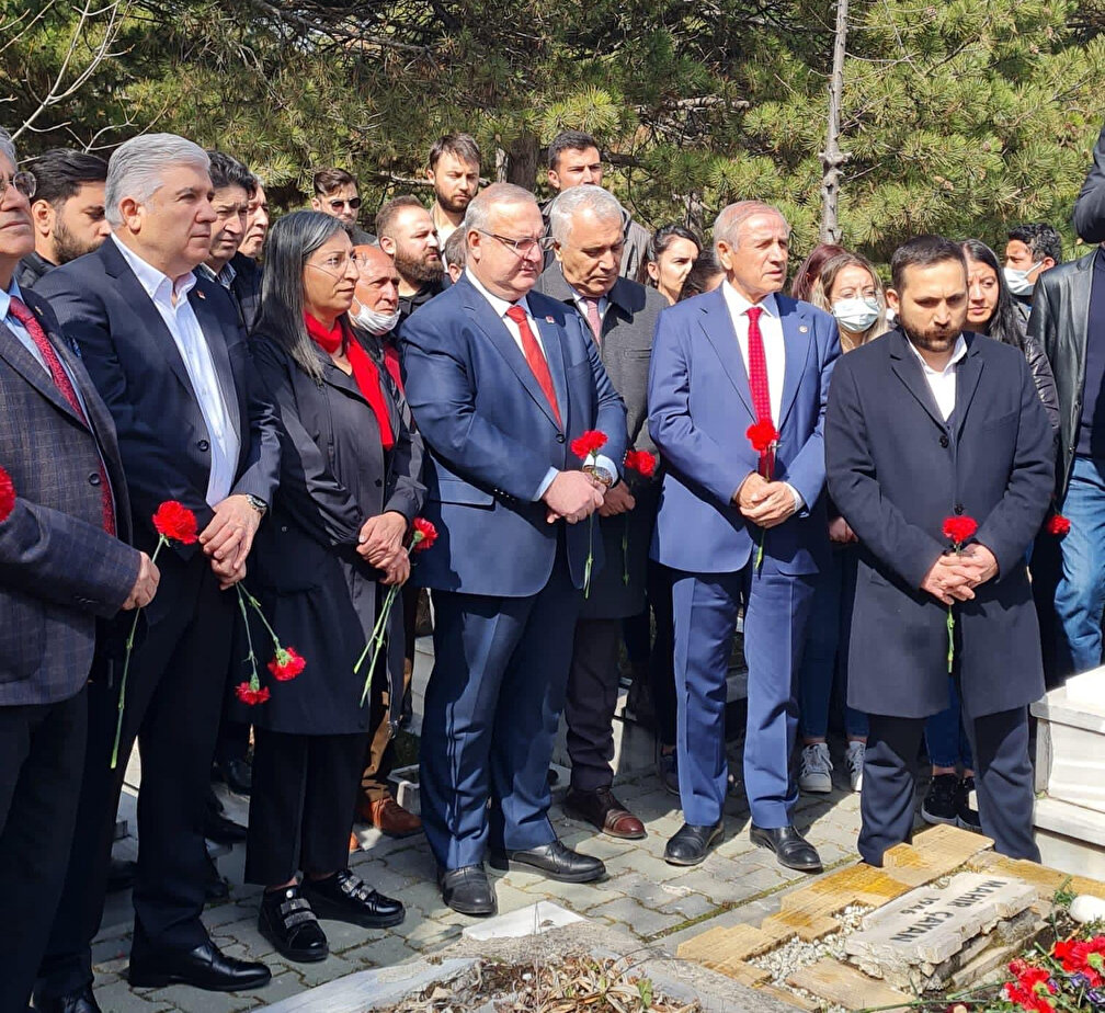 Çayan'ın mezarına üzerinde "CHP" yazan çelenk bırakıldı.