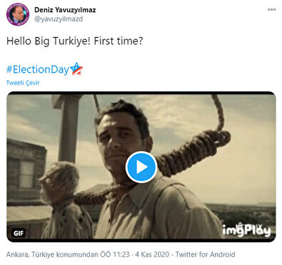 CHP Zonguldak Milletvekili Deniz Yavuzyılmaz, ABD’deki başkanlık seçimini Türkiye'ye bağlayarak bir paylaşımda bulundu. Bir filmden idam sahnesinin görüntüsünü paylaşan Yavuzyılmaz, “Merhaba büyük Türkiye! İlk kez?” ifadelerini kullandı.
