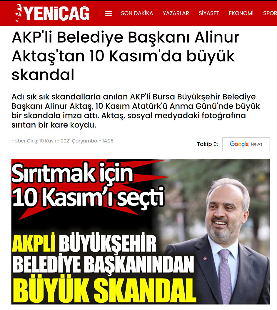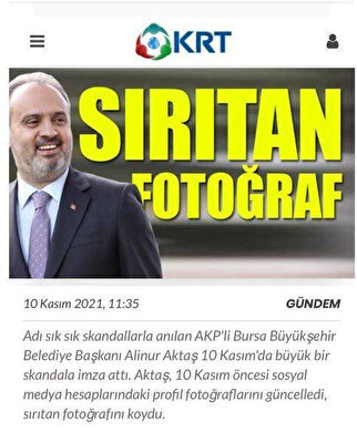 Bursa Büyükşehir Belediye Başkanı Alinur Aktaş'ı hedefine koyan KRT, "10 Kasım'da" çirkin bir algı operasyonu oluşturmaya çalıştı.