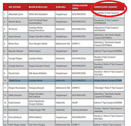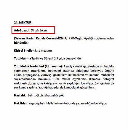 Her biri terörden tutuklu ya da hükümlü olan isimler, söz konusu raporda şu ifadelerle suçsuz ilan edilmişti: “Suçlamalar farklılaşsa bile gazetecilerin cezaevinde olmalarına neden olan iddialar ve deliller ortaklık göstermektedir. Ve bu ortak yan gazetecilik mesleğini icra etmek olarak karşımıza çıkmaktadır. Davaların tümünde belli fikirlerin ifade edilmesi ve belli kitapların, gazetelerin ve dergilerin bulundurulması suç teşkil etmektedir.”