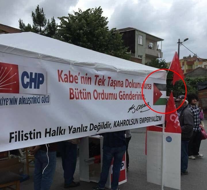 CHP'nin Filistin için hazırlattığı afişteki hatalar dikkati çekti. Ürdün bayrağıyla basılan afişte Suudi Arabistan'da olan Kabe'ye vurgu yapıldı. Ayrıca afişi hazırlayanların 'yalnız' kelimesini dahi yazamadığı görüldü.