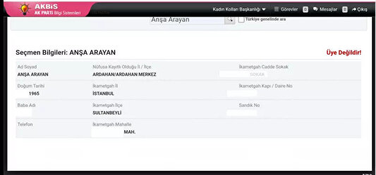 Yapılan araştırmada Anşa Arayan isimli kadının AK Parti’ye hiçbir zaman üye olmadığı ve AKBİS sisteminde de ismine rastlanmadığı görüldü.