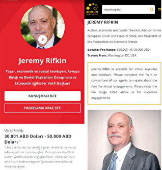 Eski Almanya Şansölyesi Angela Merkel’in ekibinden, CHP Genel Başkanı Kemal Kılıçdaroğlu’nun başdanışmanlığına transfer ettiği Jeremy Rifkin’in konferanslardan aldığı ücret gündem konusu oldu. Rifkin’in konuşma yapması için Amerikan ve İngiliz organizasyon şirketlerinden 30 ila 100 bin dolar aralığında ücret talep ediyor.