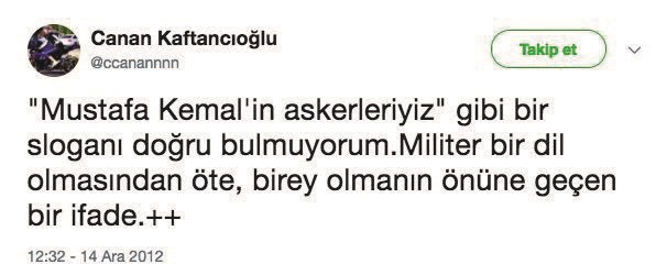 CHP İstanbul İl Başkanı seçilen Canan Kaftancıoğlu, geçmişte yaptığı skandal sözleriyle gündemde. 250 şehide rağmen darbecilerle karşı direnen vatandaşlarla dalga geçen Kaftancıoğlu, “Tekbir getirerek, boğaz keserek mi demokrasi mücadelesi verilir. İnandığınız Allah’ınız sizin de belanızı versin” diye yazdı. Sözde soykırım tezlerine destek verdi. CHP-HDP ittifakını eleştiren partililere “gerzekler” diye hakaret etti.