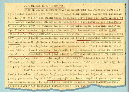 Rapor bununla da kalmadı. Örgütün ABD’nin desteklenenler listesine nasıl girdiğine de detayları ile yer verildi: “Gülen örgütü bir yandan devlete şirin gözükerek diğer tarikat ve cemaatler tasfiyesini sağlamak için devlet organlarının kullanmaya başladı. Devlet organları da Fetullah Gülen’i kullanmaya başladı. Sıkıyönetim döneminde Edremit’te Manisa’da faaliyetlerine devam etmesi komutanlıkça desteklendi. Bu da ABD ile MOSSAD’ın ‘bizatihi desteklenmesi gerekli örgütler’ listesinde gösterilmesine sebep oldu.”