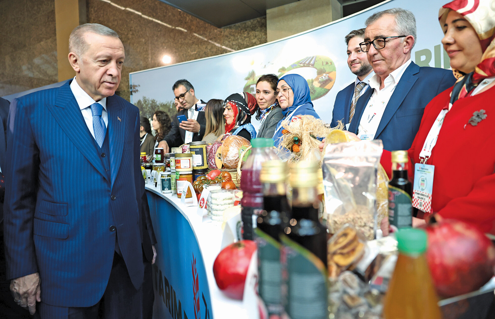 Erdoğan, toplantıya girerken çiftçilerin ürünlerini sergiledikleri stantları ziyaret etti. “Savunma alanında nasıl kendi kendimize yeterliliği stratejik öncelik olarak görüyorsak, tarımsal üretime de aynı anlayışla bakıyoruz” diyen Erdoğan, “Bunun için devletimizin tüm imkanlarını seferber ediyor, her talebi dikkatle ele alıyor, her imkanı kullanıyoruz” diye konuştu.