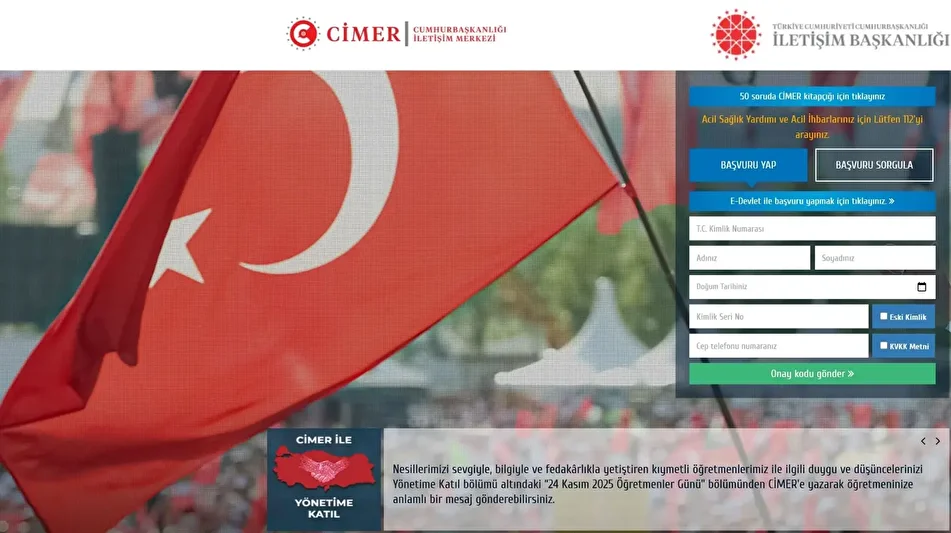 Vatandaşların yalnızca istek, şikayet, görüş-öneri, bilgi edinme değil kamu politikaları ve kamu görevlilerinden duyulan memnuniyet dolayısıyla teşekkür başvurularının da yapıldığı CİMER, 24 Kasım Öğretmenler Günü kutlamalarında da ilk başvuru merkezi oldu. 81 ilden binlerce okulda görev yapan öğretmenlerin görev bilinci, ilgi ve duyarlılıkları, sabır ve anlayışları verdikleri emek ve sevgi dolayısıyla şanslı olduklarını belirten öğrenciler ve veliler, öğretmenlere teşekkürlerini CİMER üzerinden ilettiler.