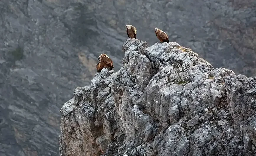 Erzincan’ın Kemaliye ilçesinde, yaban hayatı fotoğrafçıları Osman Topaloğlu ve Arda Topaloğlu tarafından göçmen akbabalar görüntülendi.