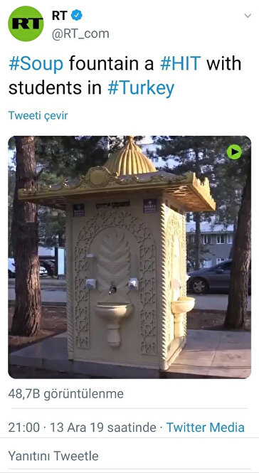 Bursa Büyükşehir Belediyesinin Uludağ Üniversitesi Görükle Kampüsü’ne yaptırdığı çorba çeşmesi Rusya televizyon kanalının ilgisini çekti.