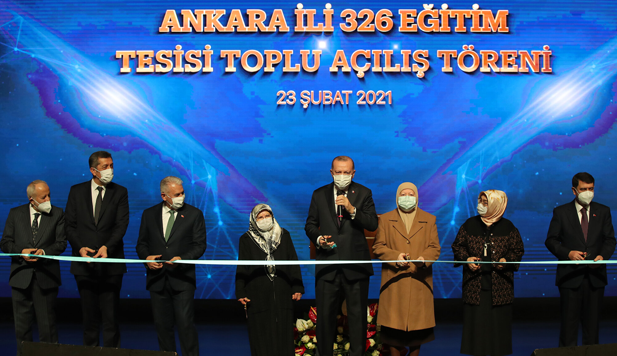 Erdoğan; hocaları, muallimleri, öğretmenleri, talebeleri tören vesilesiyle gazi mekanda, milletin evinde ağırlamaktan büyük memnuniyet duyduğunu dile getirerek açılışı yapılan eğitim-öğretim tesislerinin hayırlı olmasını diledi. Erdoğan, "Bugün tek bir açılış töreniyle 326 eğitim öğretim tesisini Ankaralı kardeşlerimizin hizmetine sunuyoruz. Dikkat ederseniz sadece eğitim demiyorum. Çünkü bu işin içinde bir de öğretim var. Laboratuvar deyince akla eğitim gelir ama şöyle kitabi olarak baktığımız zaman da öğretim." ifadelerini kullandı.