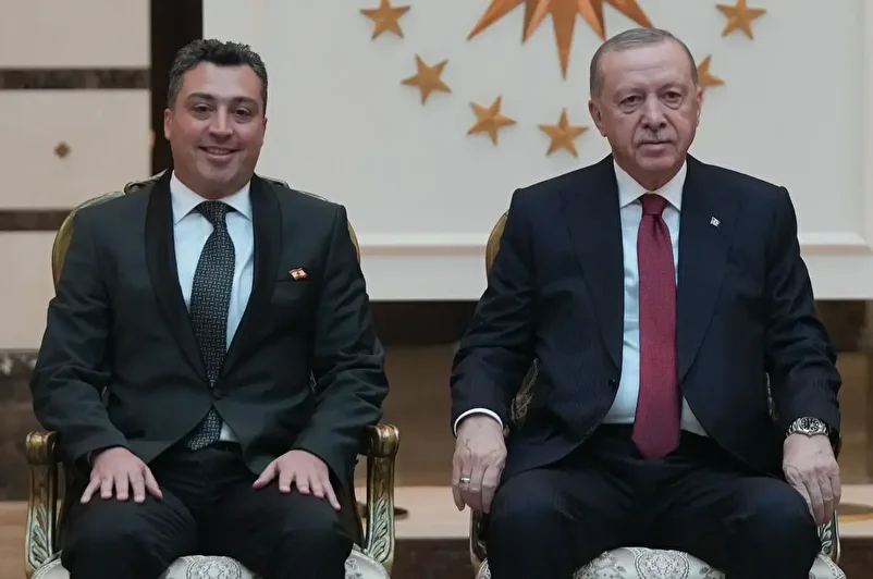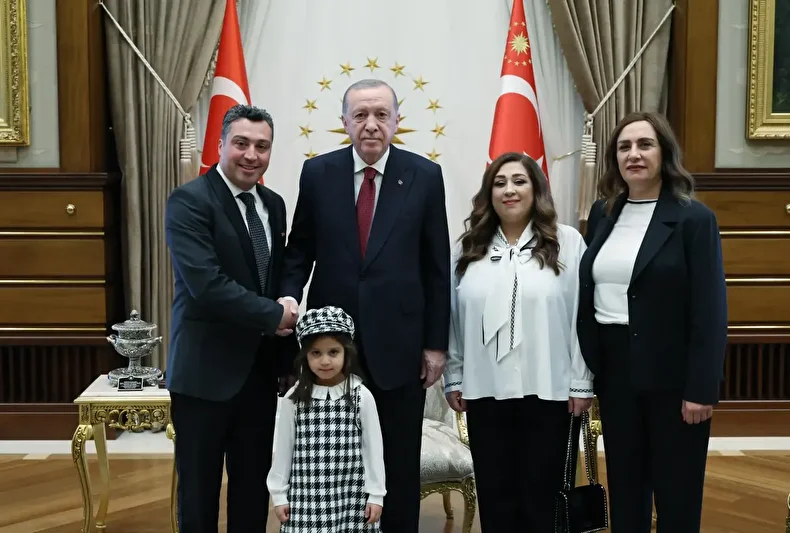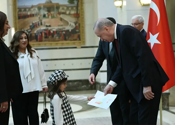 Mektup takdimi sırasında Lübnan Büyükelçisi Anuti'nin küçük kızı, Cumhurbaşkanı Erdoğan'a çizdiği resmi hediye etti.